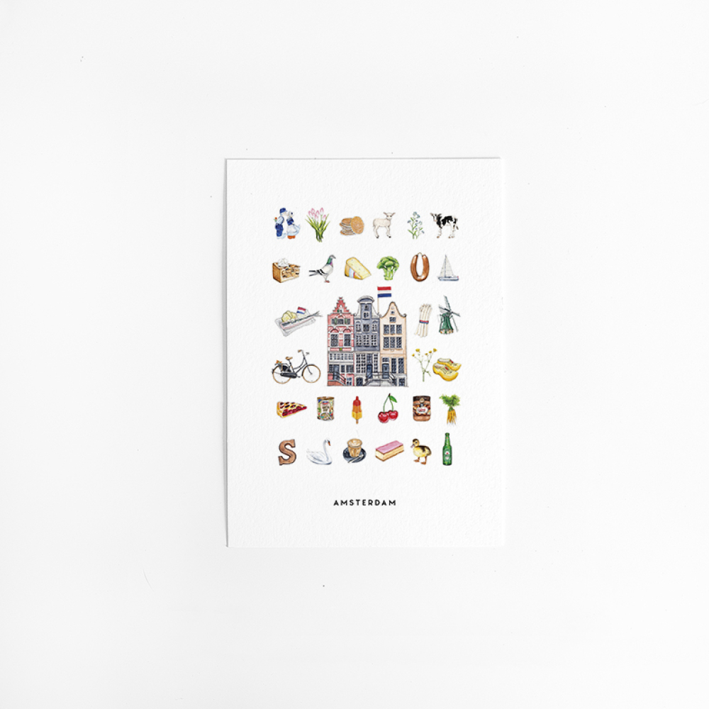 De kaart heeft een originele pen-tekening van een Nederlandse illustrator BINTJE.